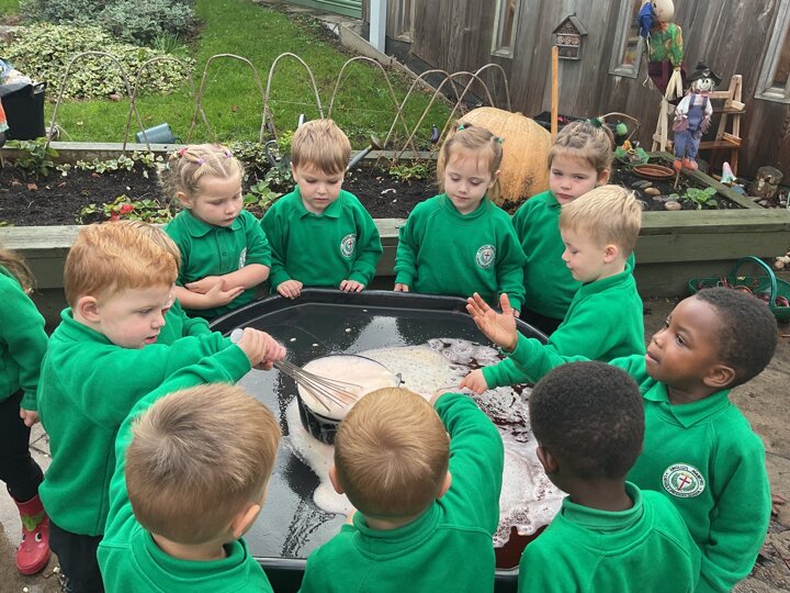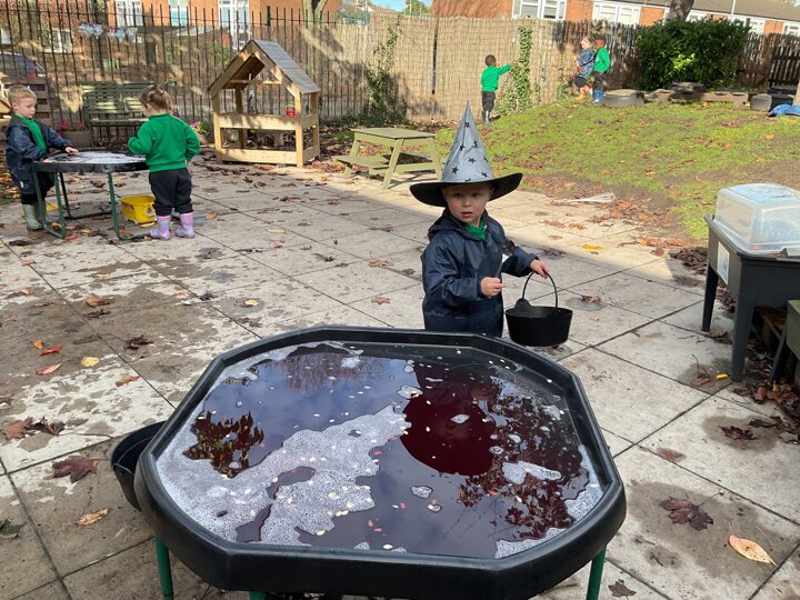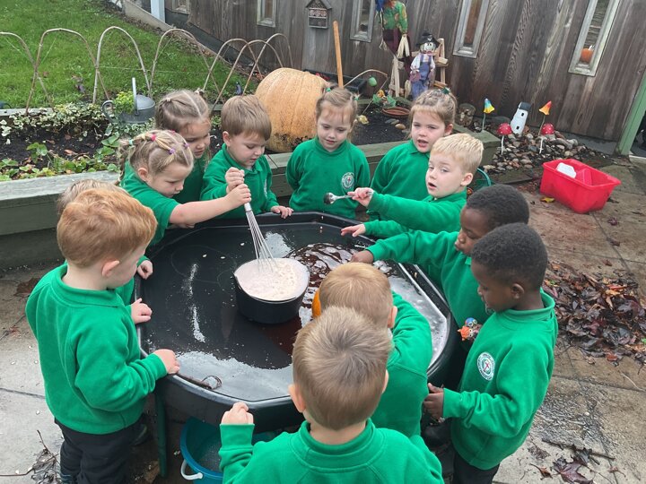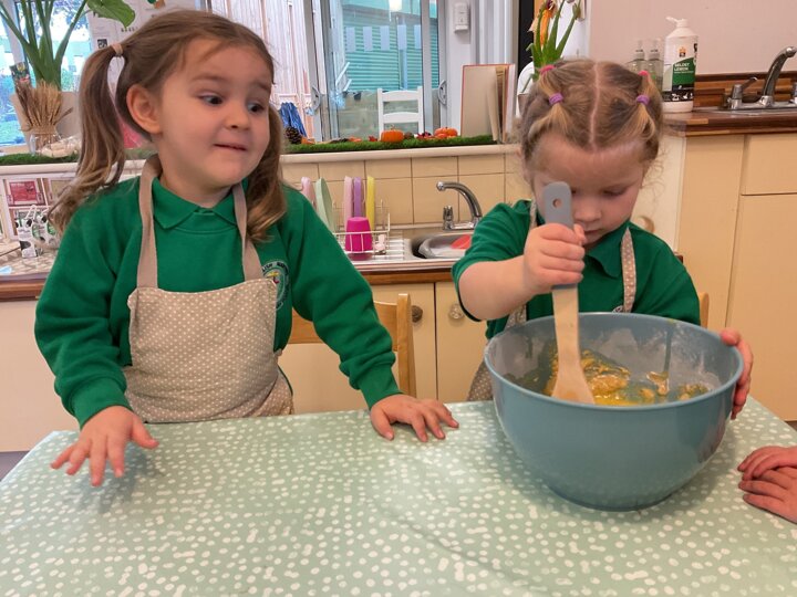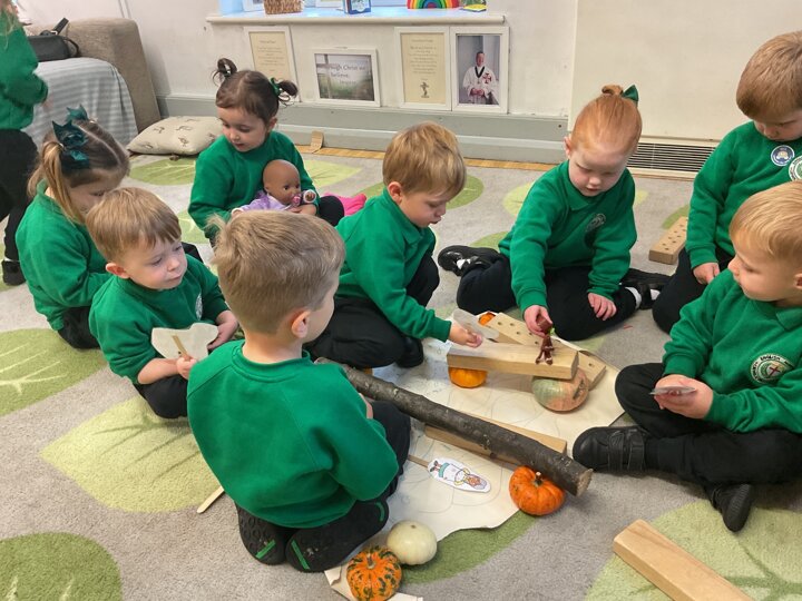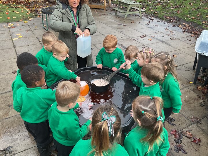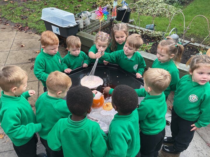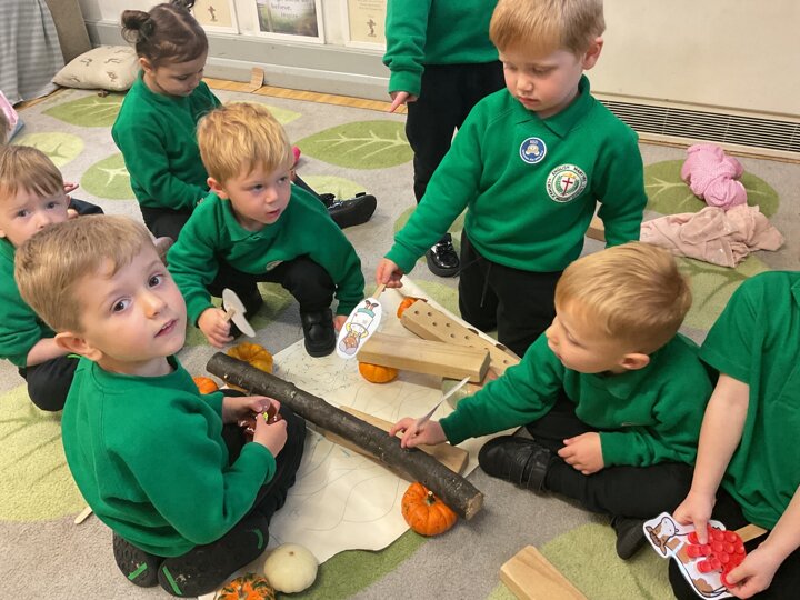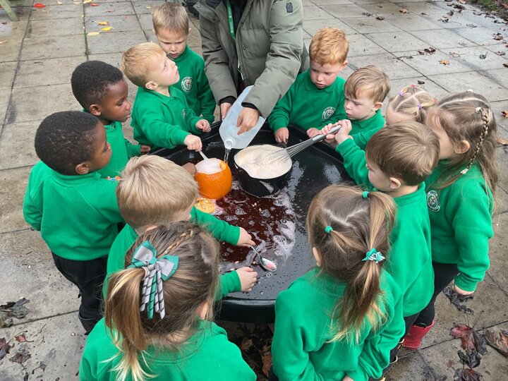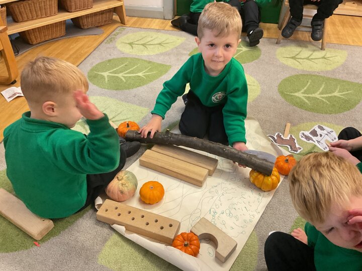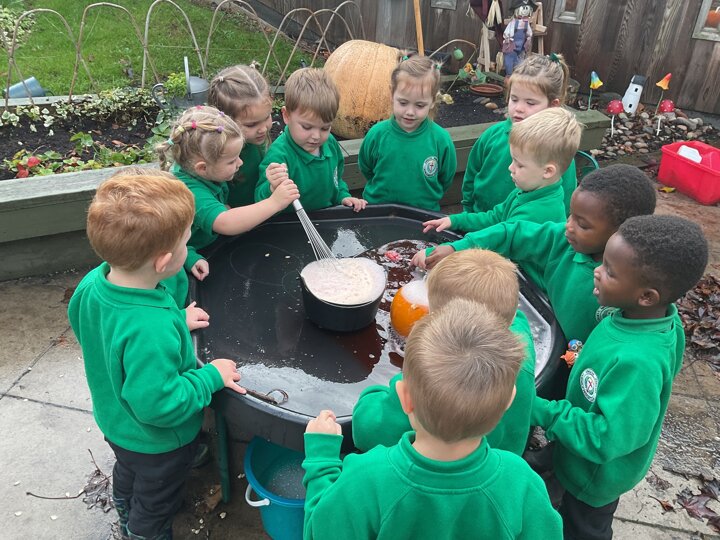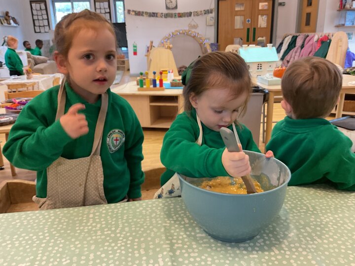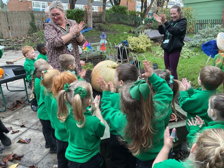 Over the past few weeks the children have been really interested in pumpkins. They have brought pumpkins in to use in our learning, and told us about visits to pumpkin patches. We have used pumpkins in our maths counting and comparing activities, created and investigated pumpkin potions, shared books pumpkins and used golf tees and wooden hammers to make holes in pumpkins to develop our fine motor skills. We also been using pumpkins in our independent play both inside and outside. On Wednesday we baked pumpkin muffins. To top it off we received a very generous donation of a huge pumpkin for our nursery garden which has been very popular with visitors from other year groups!