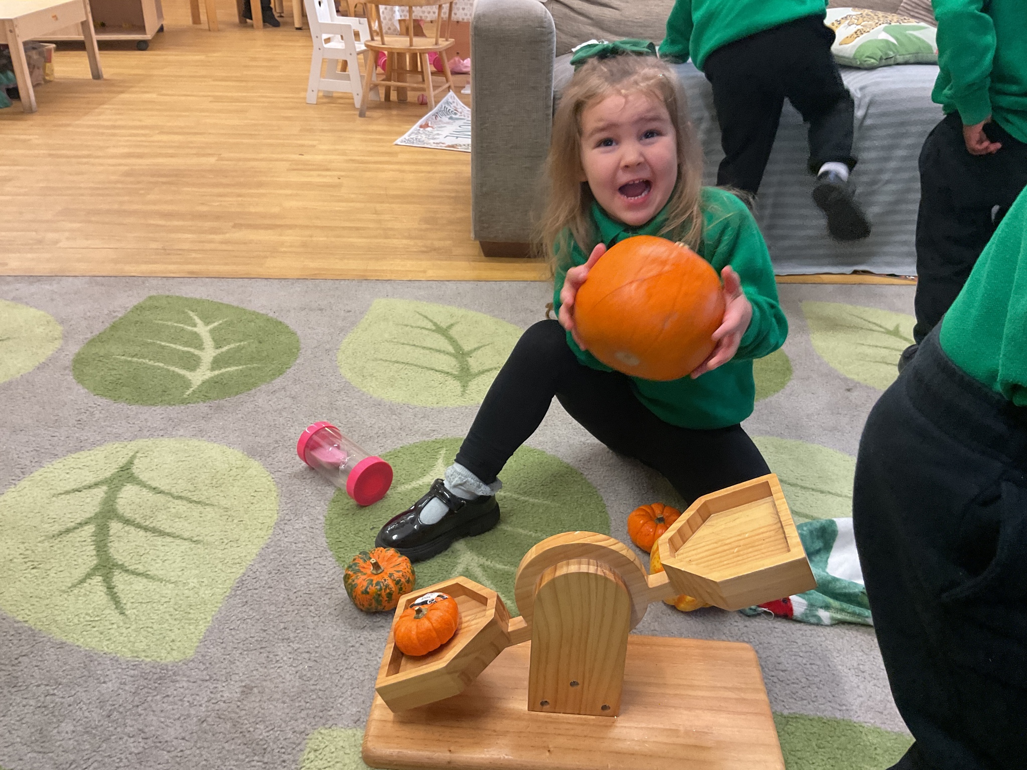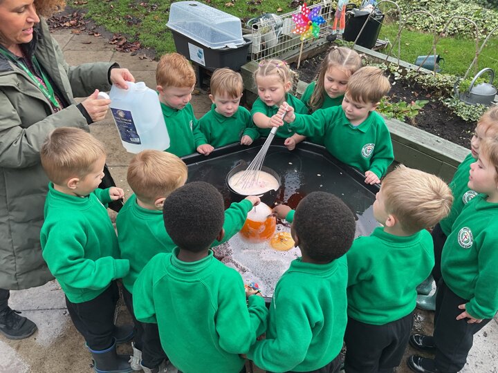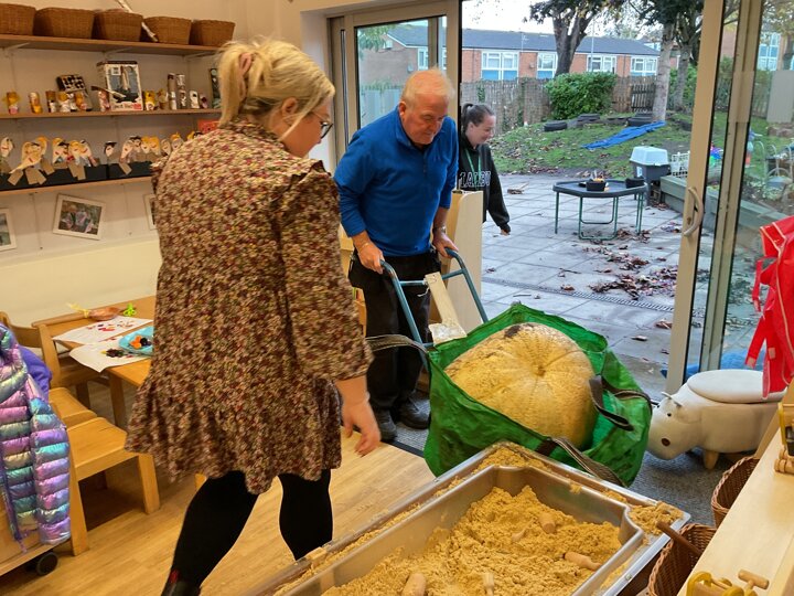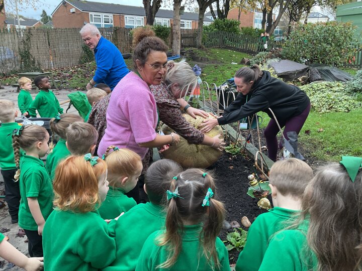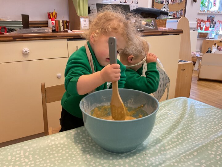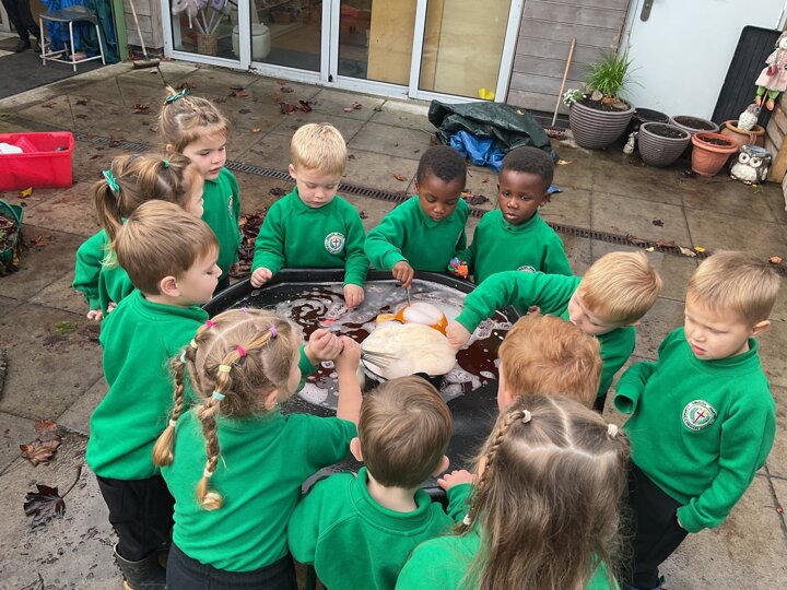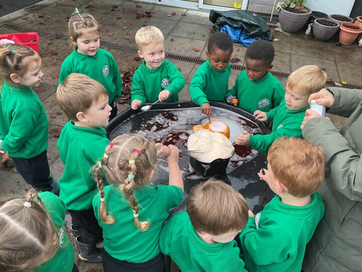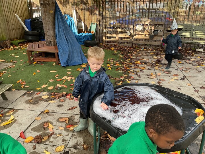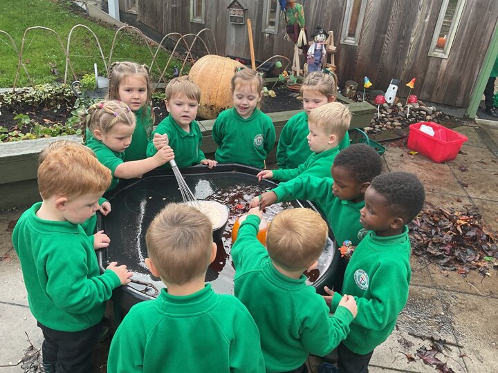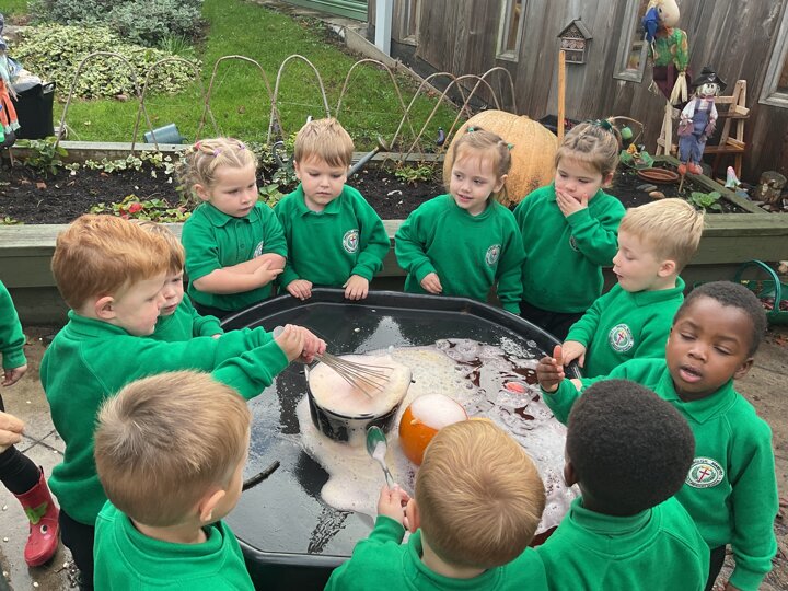 Over the past few weeks the children have been really interested in pumpkins. They have brought pumpkins in to use in our learning, and told us about visits to pumpkin patches. We have used pumpkins in our maths counting and comparing activities, created and investigated pumpkin potions, shared books pumpkins and used golf tees and wooden hammers to make holes in pumpkins to develop our fine motor skills. We also been using pumpkins in our independent play both inside and outside. On Wednesday we baked pumpkin muffins. To top it off we received a very generous donation of a huge pumpkin for our nursery garden which has been very popular with visitors from other year groups!