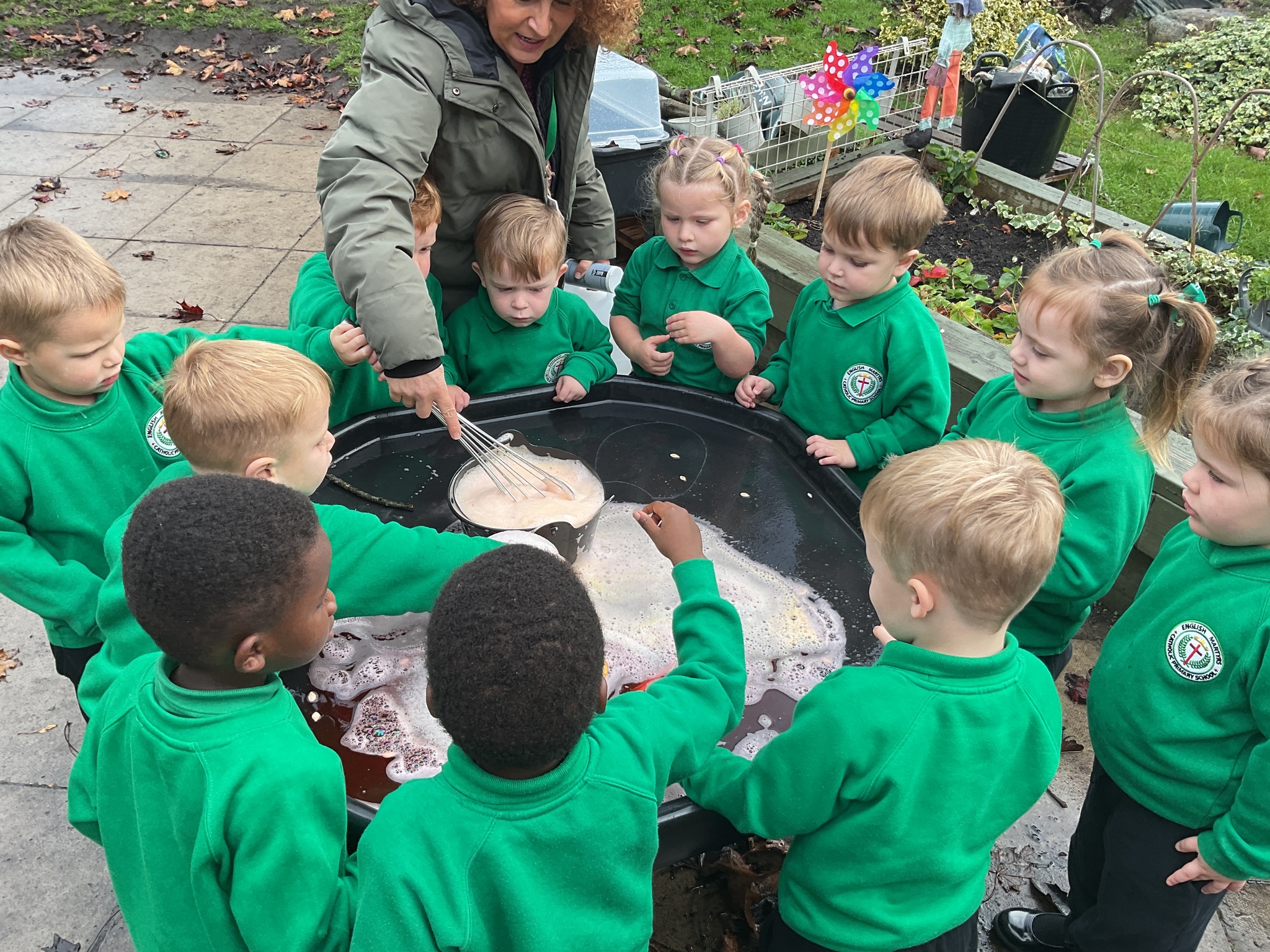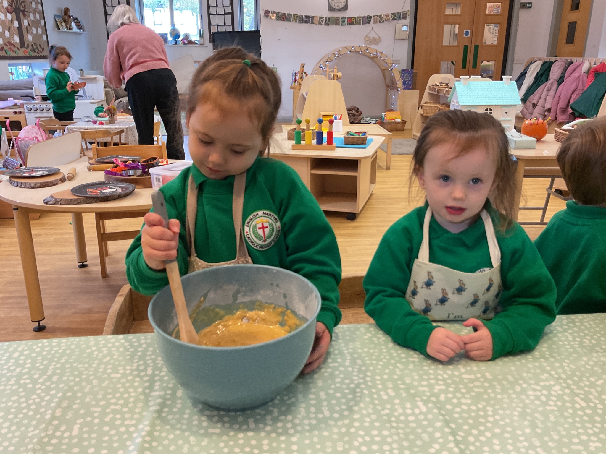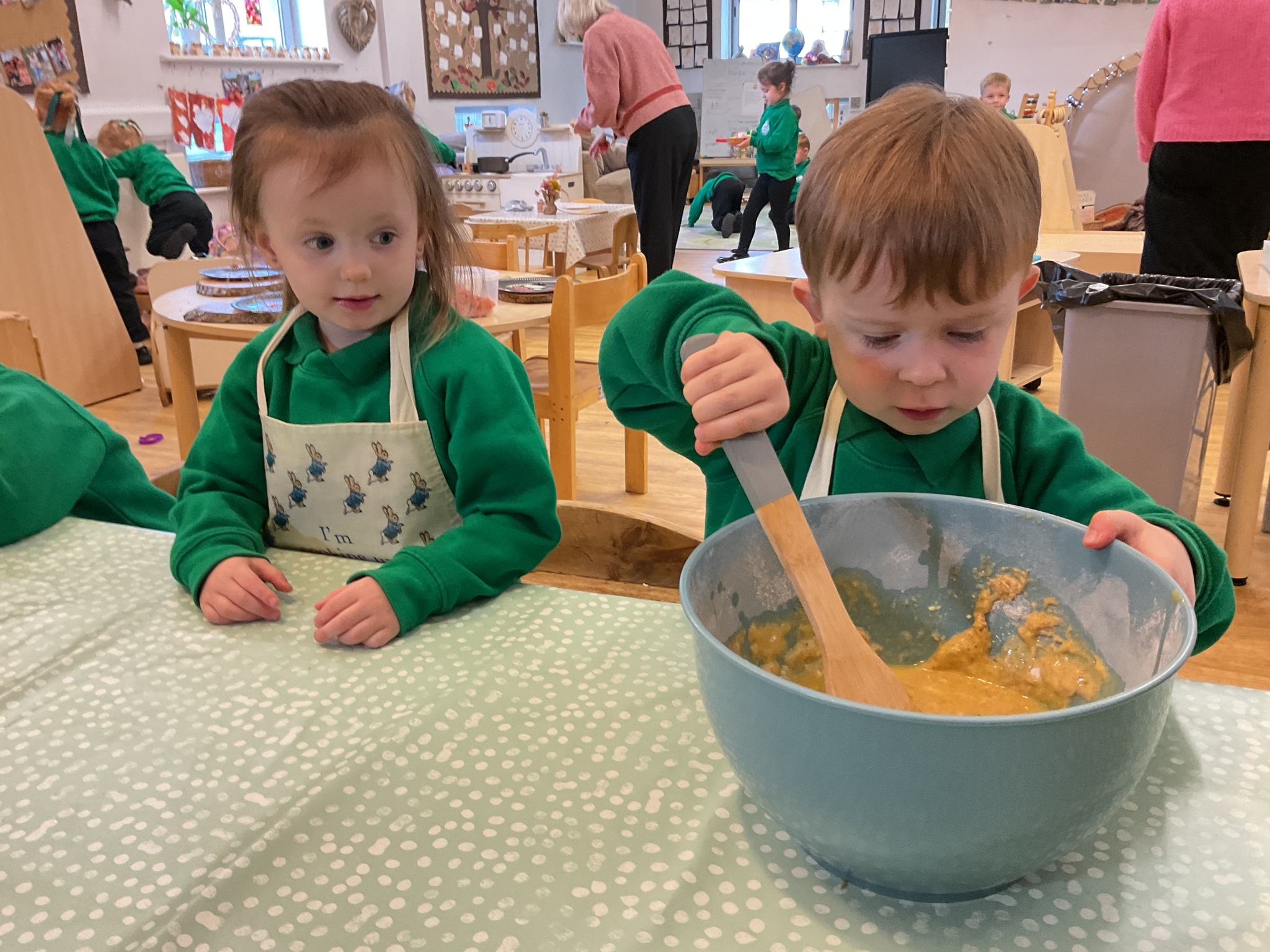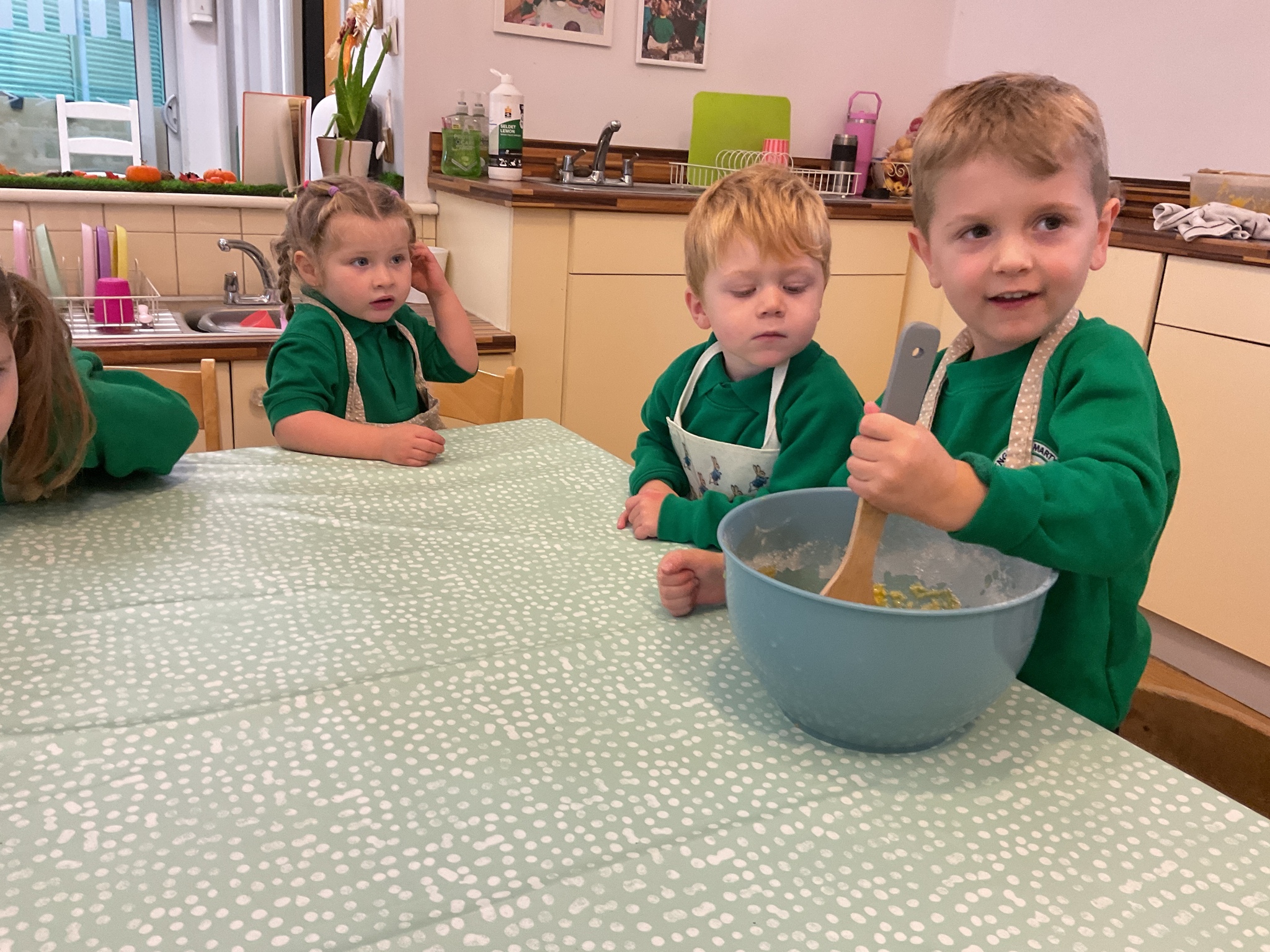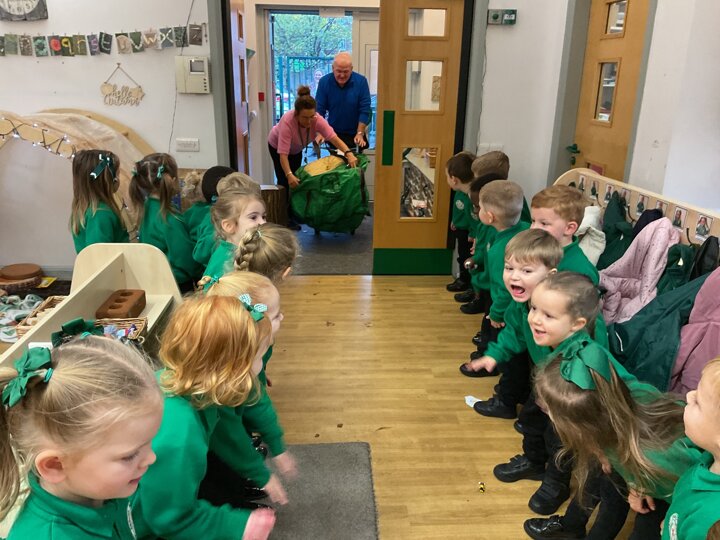 Over the past few weeks the children have been really interested in pumpkins. They have brought pumpkins in to use in our learning, and told us about visits to pumpkin patches. We have used pumpkins in our maths counting and comparing activities, created and investigated pumpkin potions, shared books pumpkins and used golf tees and wooden hammers to make holes in pumpkins to develop our fine motor skills. We also been using pumpkins in our independent play both inside and outside. On Wednesday we baked pumpkin muffins. To top it off we received a very generous donation of a huge pumpkin for our nursery garden which has been very popular with visitors from other year groups!