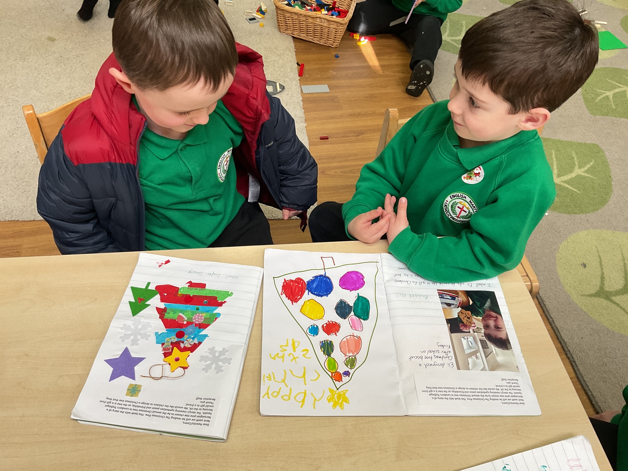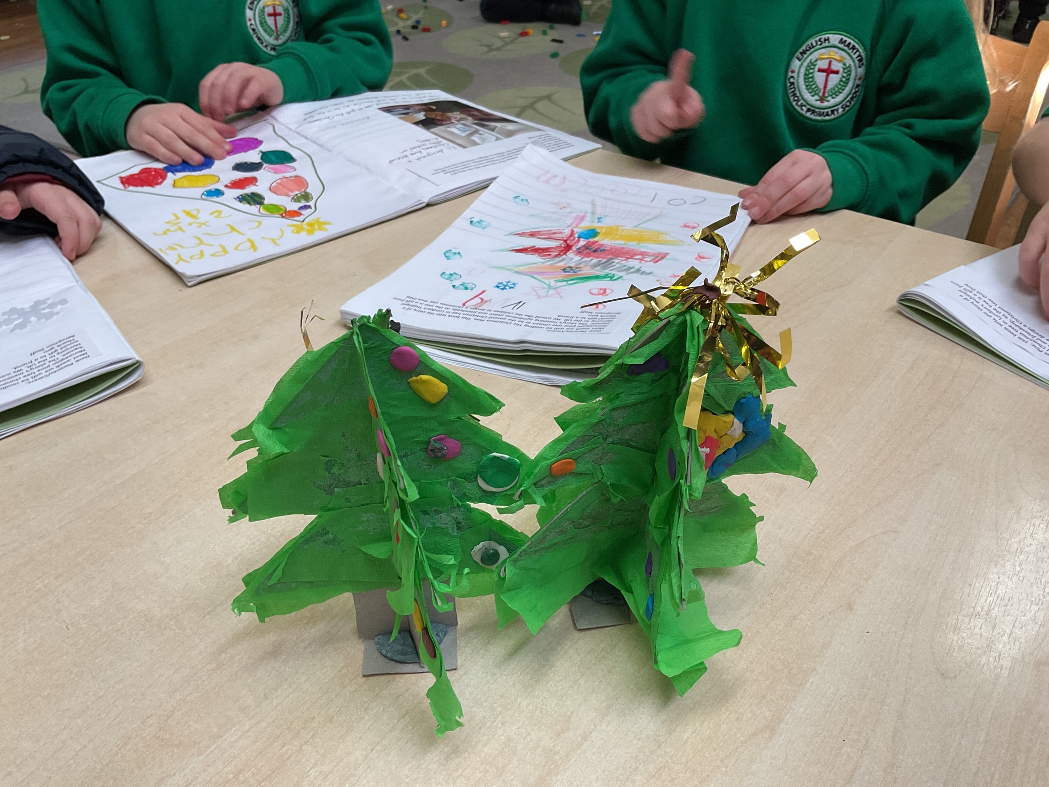 The week we have been reading the Christmas Pine. The book tells the story of a Norwegian pine tree chosen to be the annual Christmas tree in Trafalgar Square. The story’s meaning symbolises peace and friendship as the tree is a gift from Norway to the UK. This week the children designed their own Christmas tree and thought about a friend they would gift it to. We shared our designed, talked about how they looked, who they would gift it to and why.