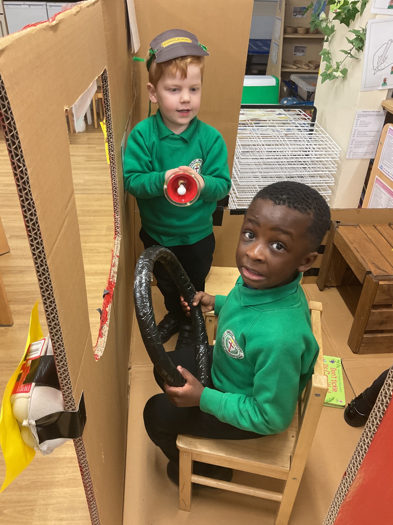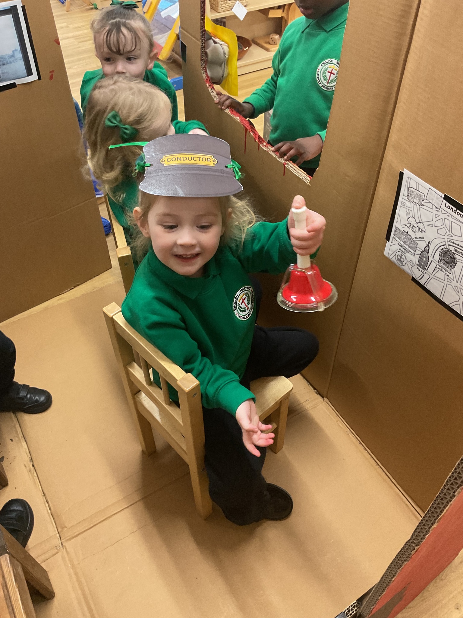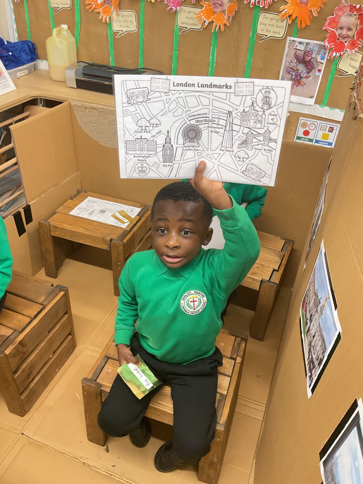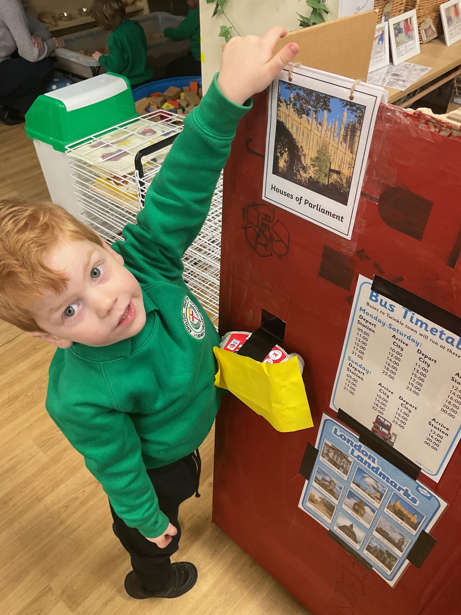 The children are continuing to enjoy reading the ‘Naughty Bus’ by Jan and Jerry Oke. This week they decided to make their own bus so they could travel around London seeing all the famous landmarks. So far they’ve visited Buckingham Palace, the Houses of Parliament and Big Ben. They are having lots of fun looking at maps and photographs and talking about their exciting journeys.