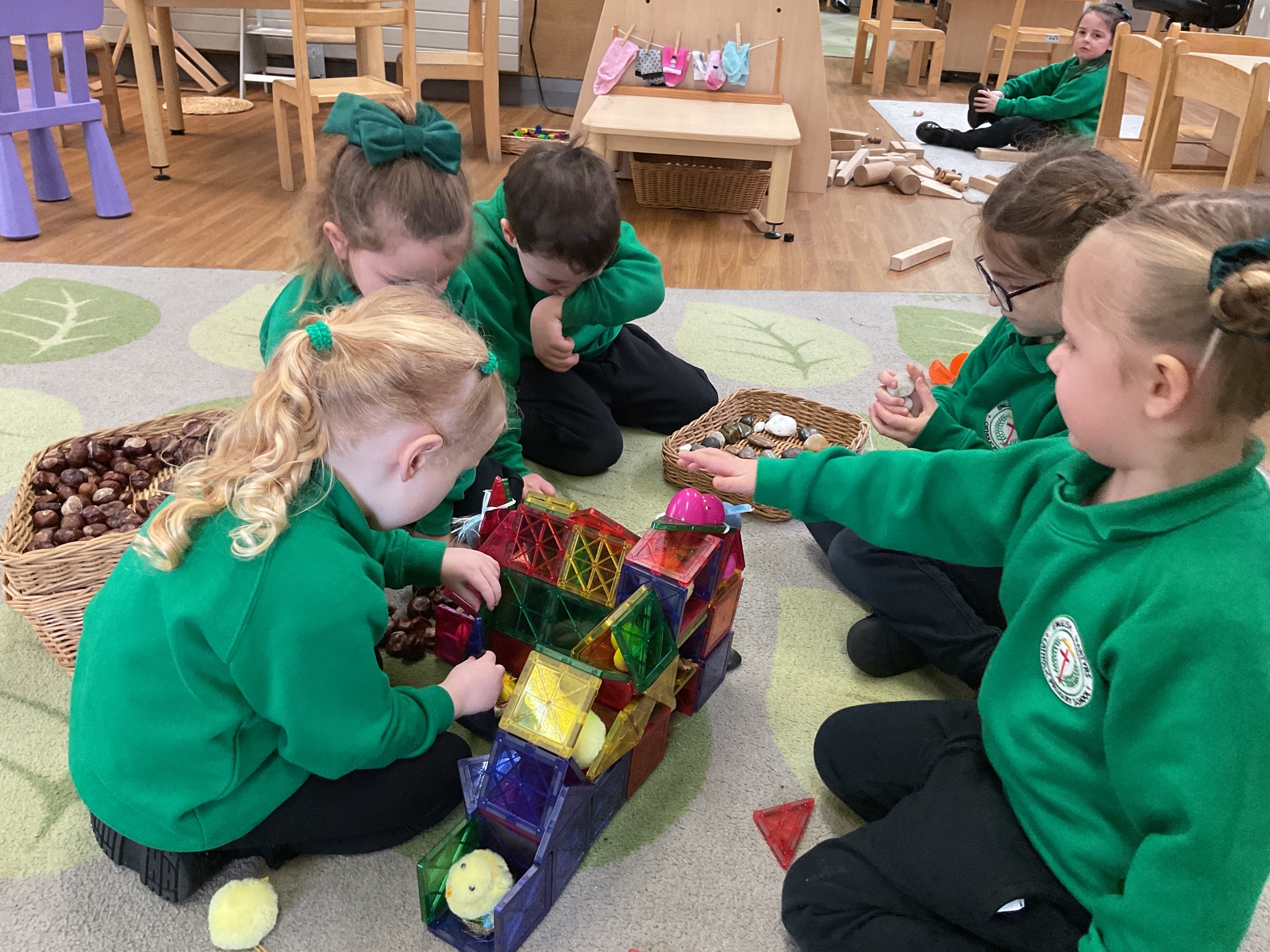 We may have only just returned to school after the half term break but the children are already excited for Easter! They have created an Easter house using the magnetic tiles. Lots of lovely language and cooperative play.