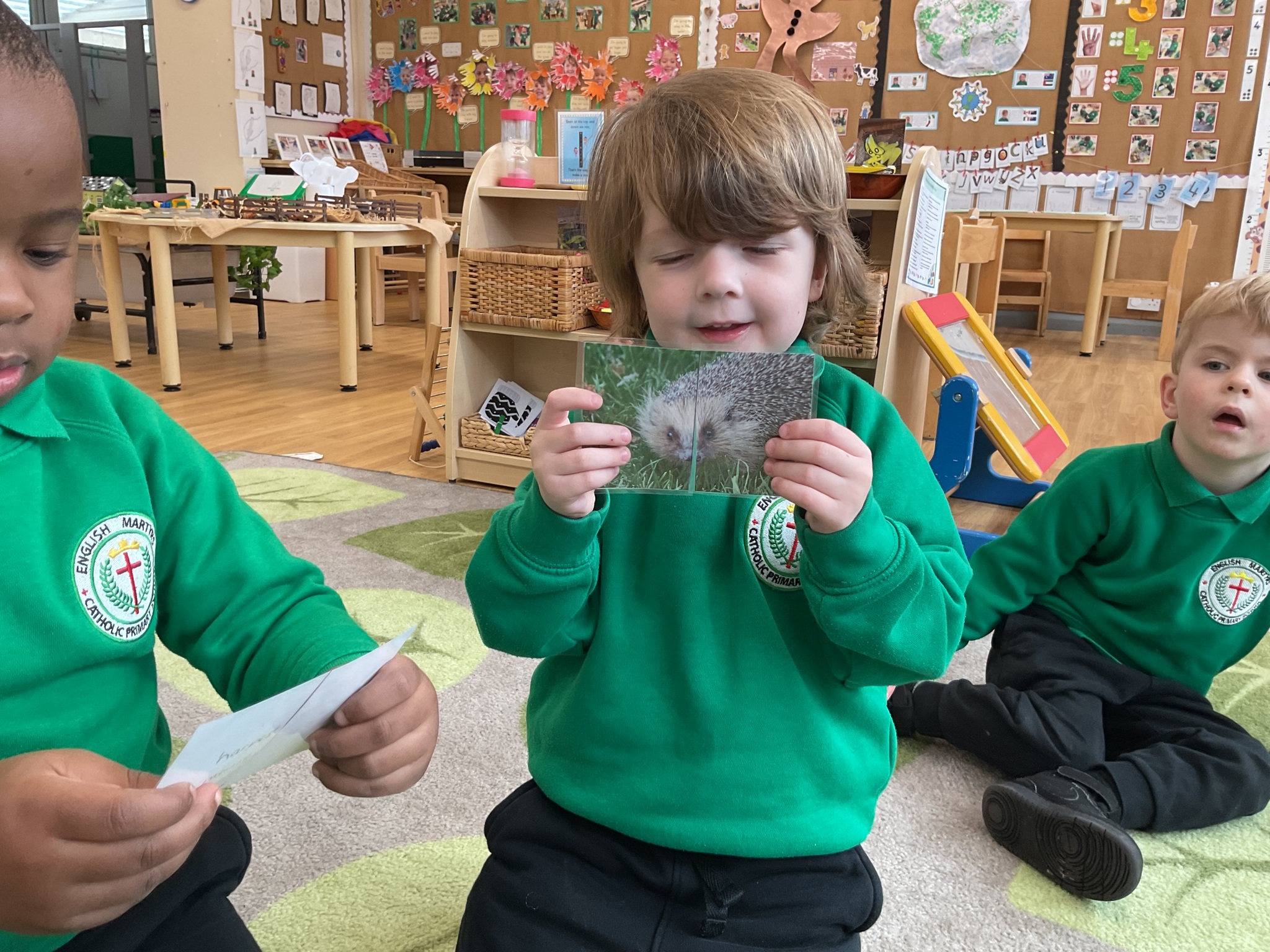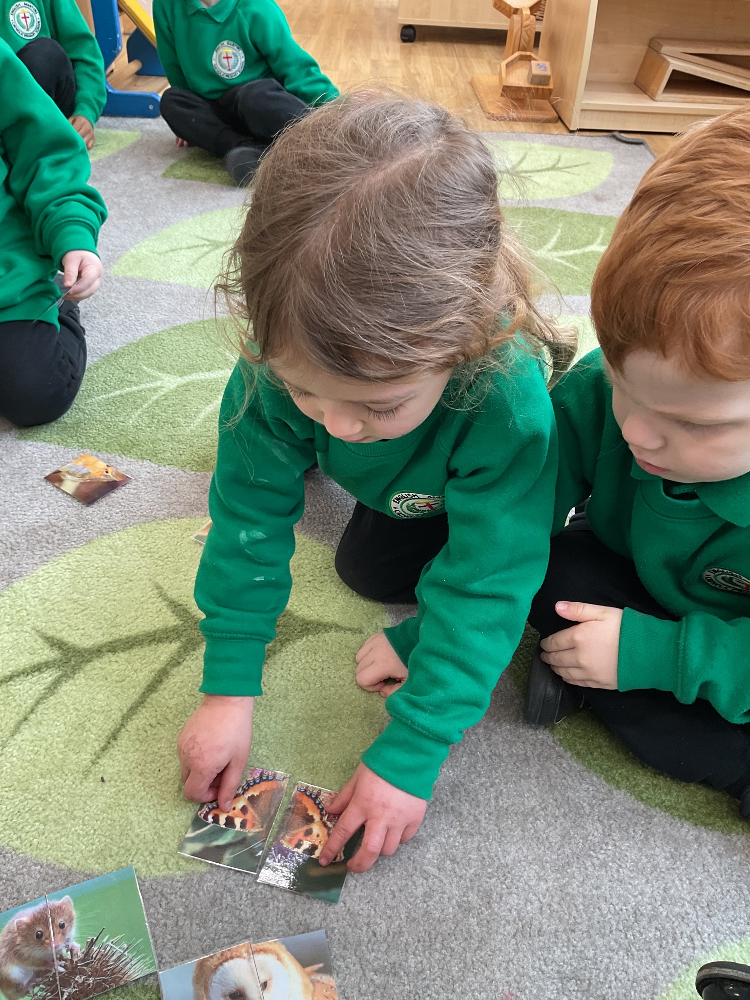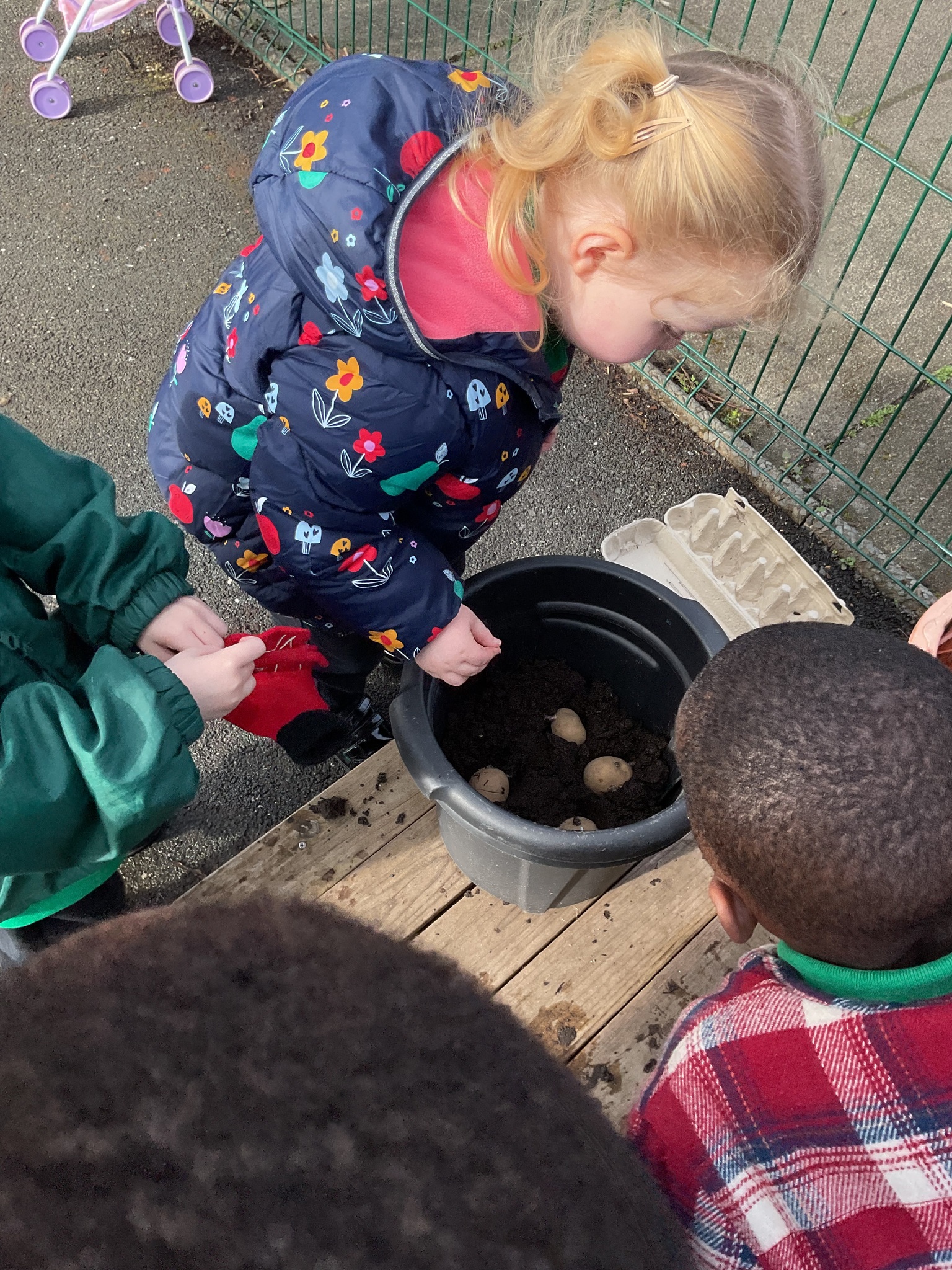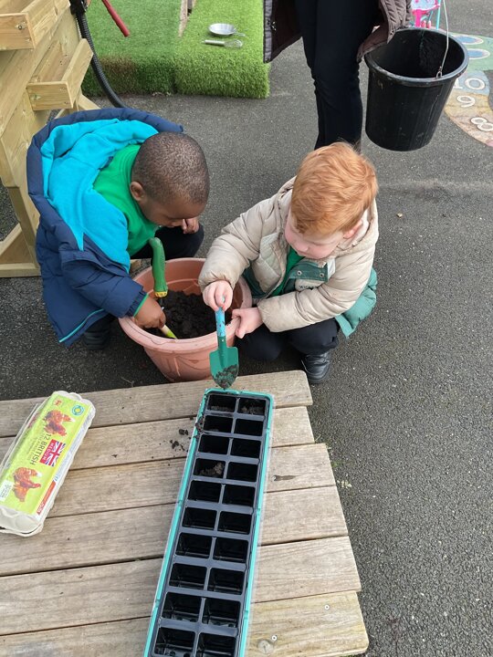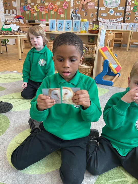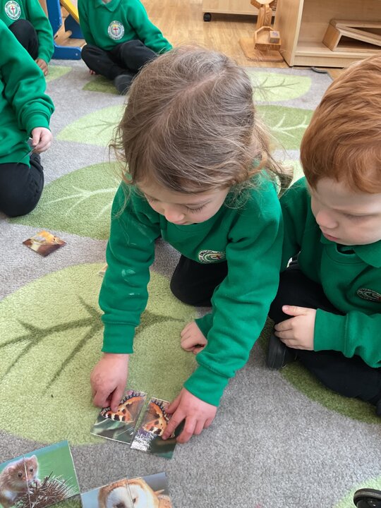 This week is British Science Week and we are noticing how science is all around us. We have been looking at animals and discussing how they have similarities and differences. The children have enjoyed playing a matching game - finding the halves of the animal faces and identifying each animal. We have also talked about forces - pushing and pulling in a hammock and with our tyres outdoors. We have looked at floating and sinking in water and planted sunflower seeds and potatoes.