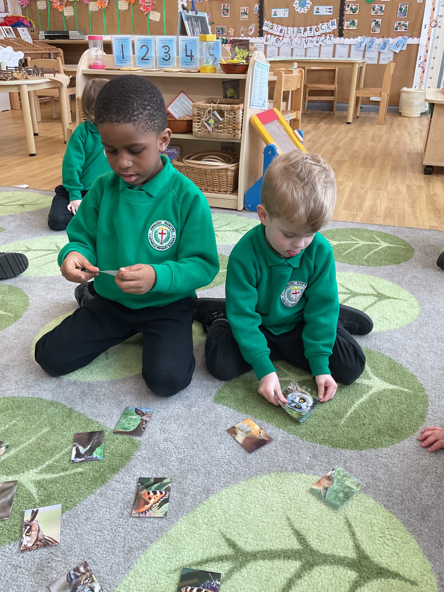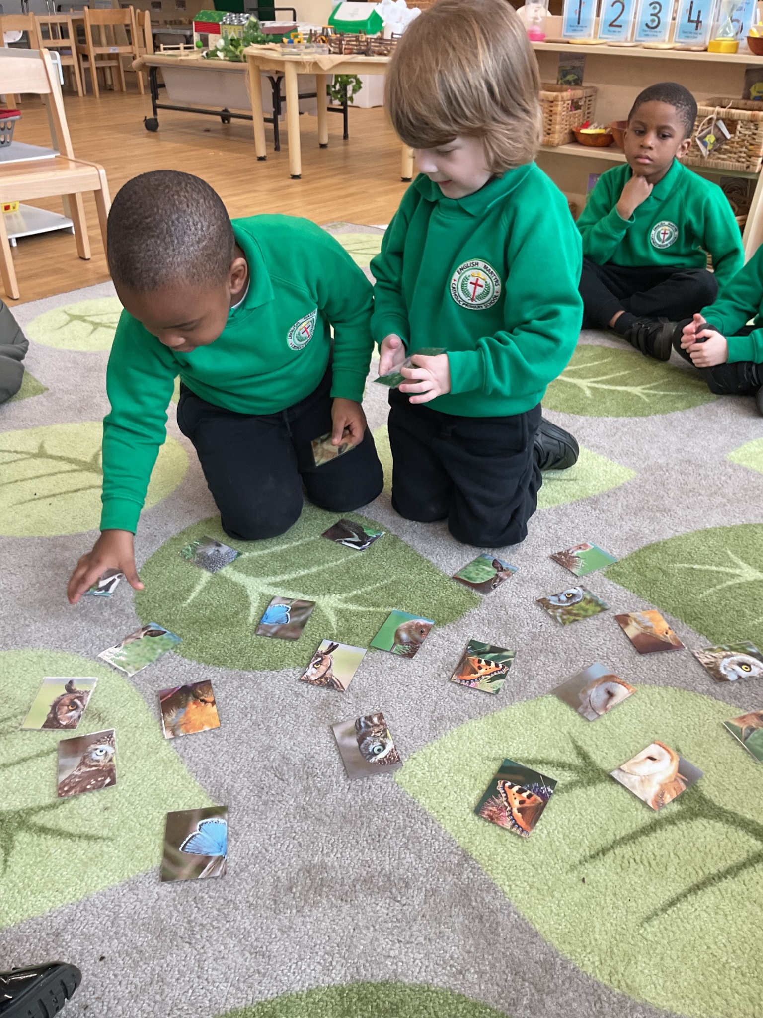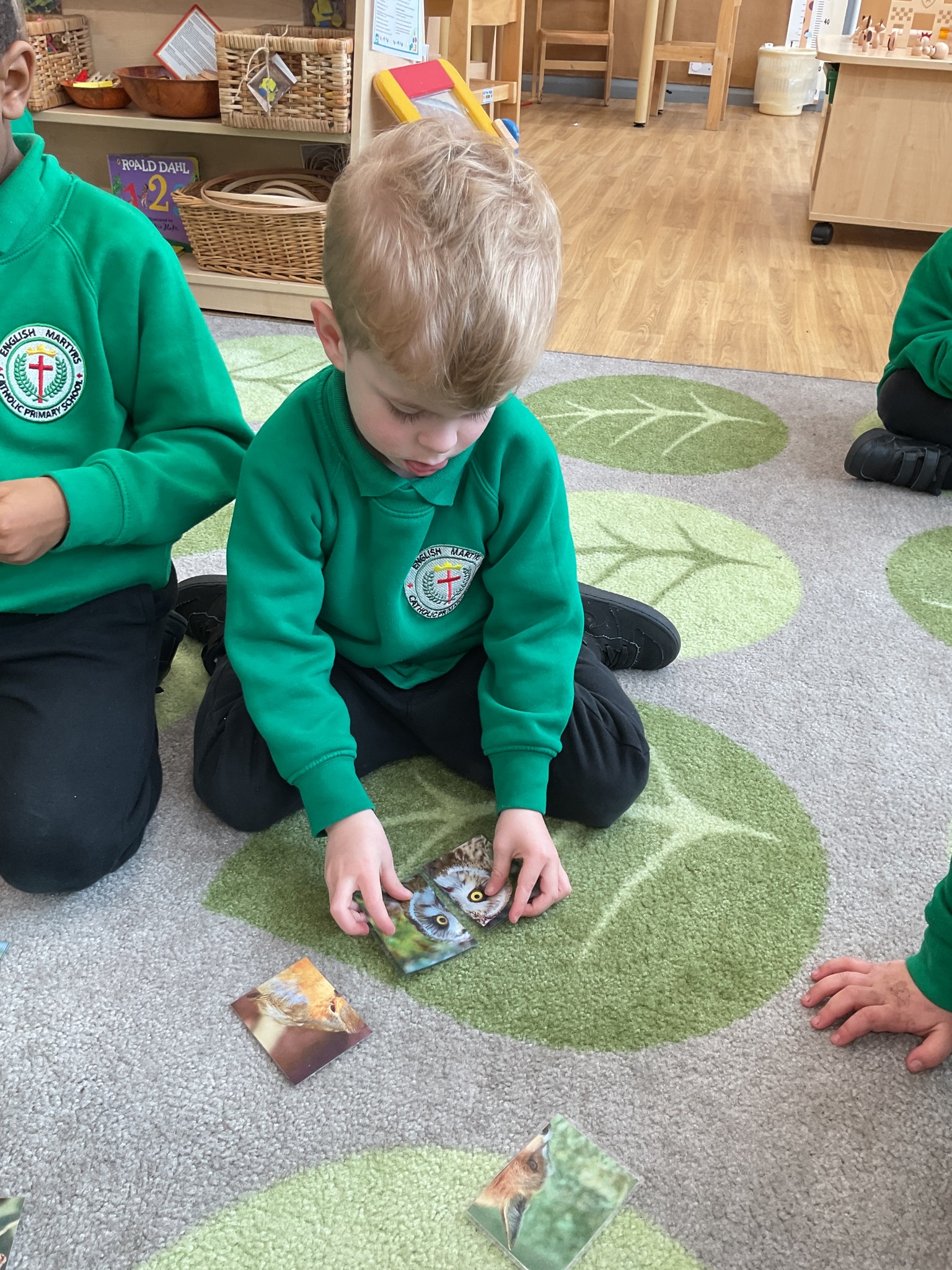 This week is British Science Week and we are noticing how science is all around us. We have been looking at animals and discussing how they have similarities and differences. The children have enjoyed playing a matching game - finding the halves of the animal faces and identifying each animal. We have also talked about forces - pushing and pulling in a hammock and with our tyres outdoors. We have looked at floating and sinking in water and planted sunflower seeds and potatoes.